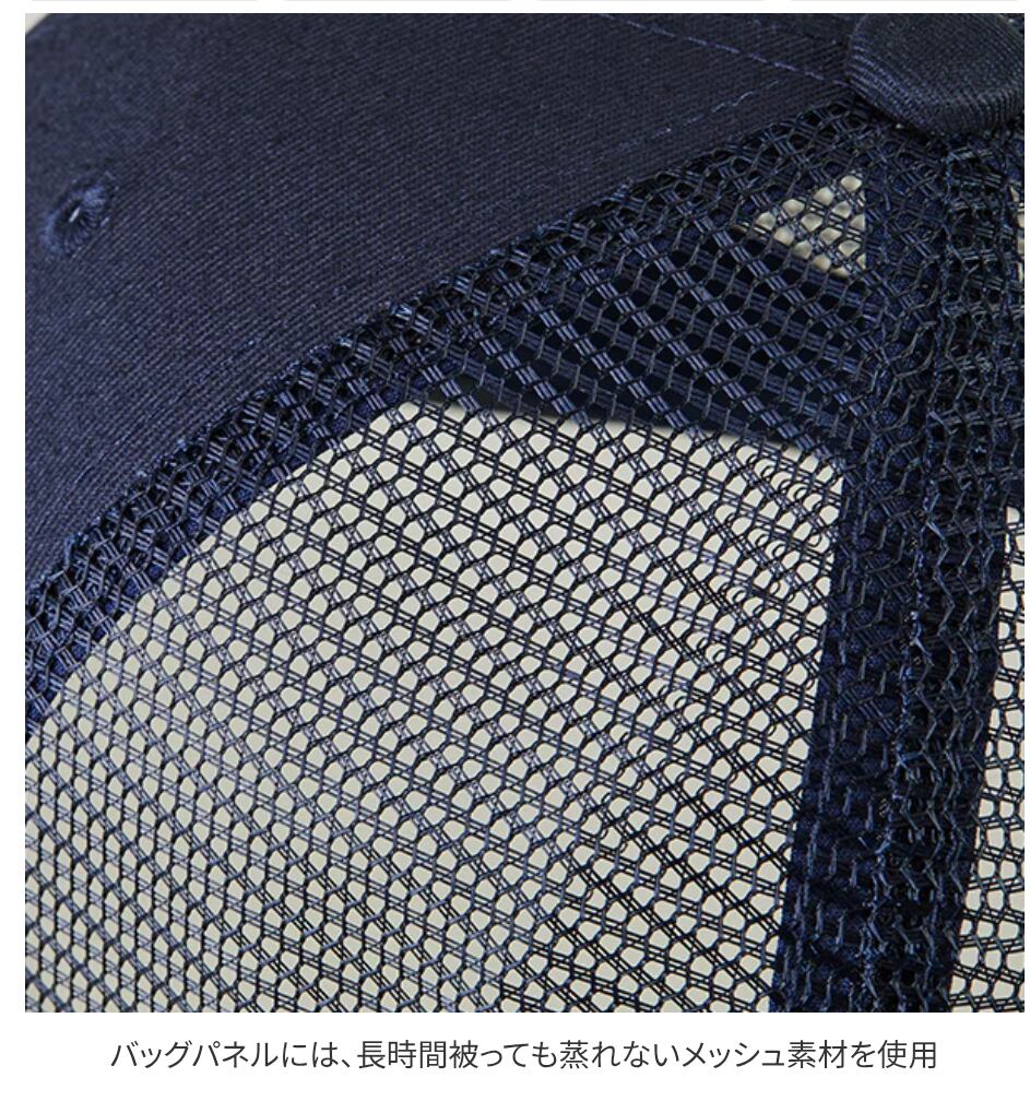 バックパネルには蒸れないメッシュ素材を使用し、フロントパネルには固めの芯が入っているため、しっかりと形状をキープ。サイズ調節もできるのでユニセックスで楽しめます。