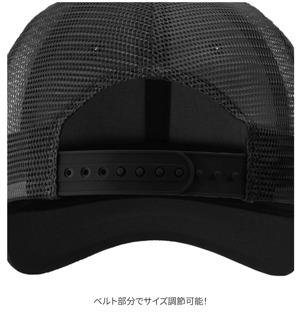 バックパネルには蒸れないメッシュ素材を使用し、フロントパネルには固めの芯が入っているため、しっかりと形状をキープ。サイズ調節もできるのでユニセックスで楽しめます。