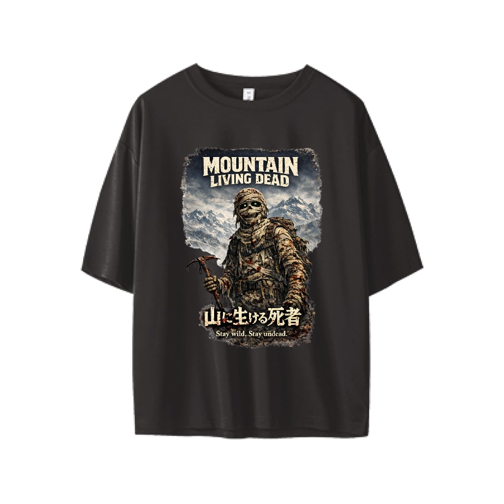 山に生ける死者メッシュゆるTシャツ 闇